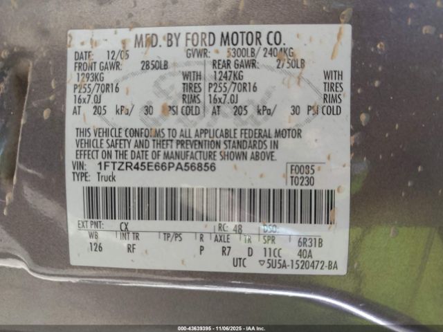 | VIN : 1FTZR45E66PA56856 |