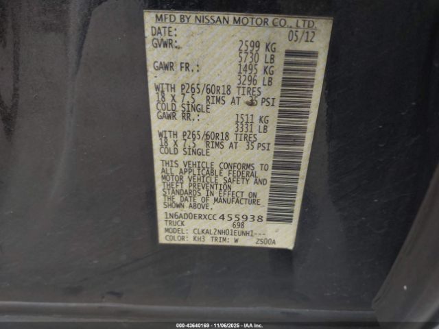 | VIN : 1N6AD0ERXCC455938 |