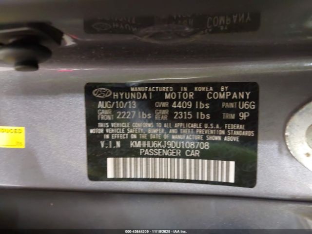 | VIN : KMHHU6KJ9DU108708 |