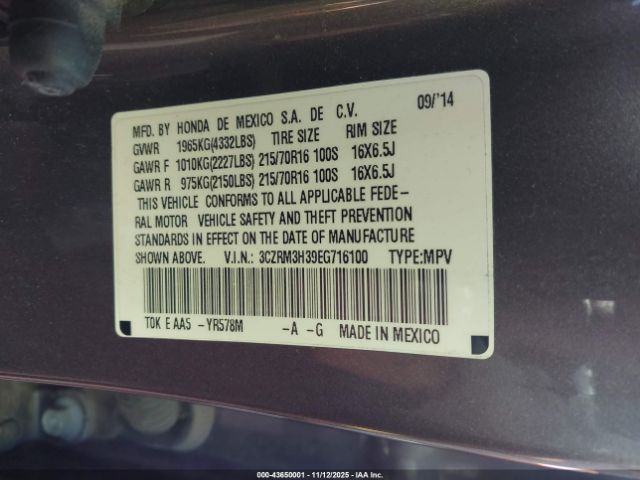 | VIN : 3CZRM3H39EG716100 |