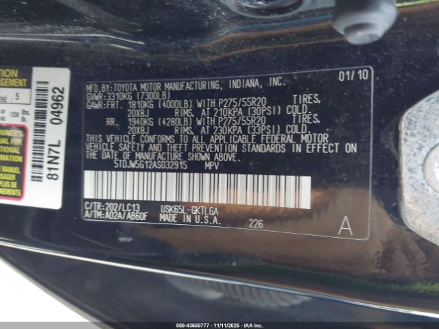 | VIN : 5TDJW5G12AS032915 |