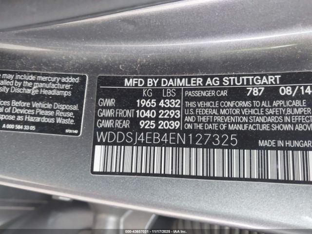| VIN : WDDSJ4EB4EN127325 |