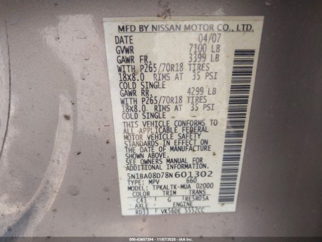 | VIN : 5N1BA08D78N601302 |