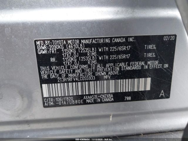 | VIN : 2T3H1RFV4LC055933 |