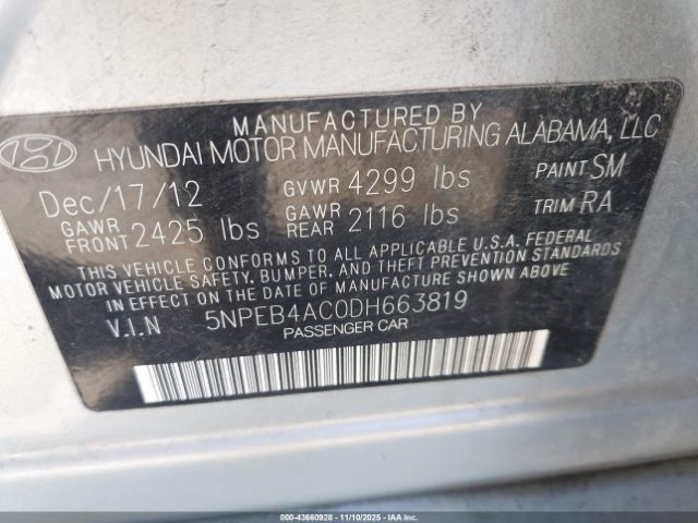 | VIN : 5NPEB4AC0DH663819 |
