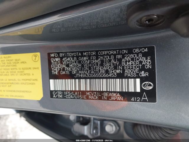| VIN : JTHBA30G655066453 |