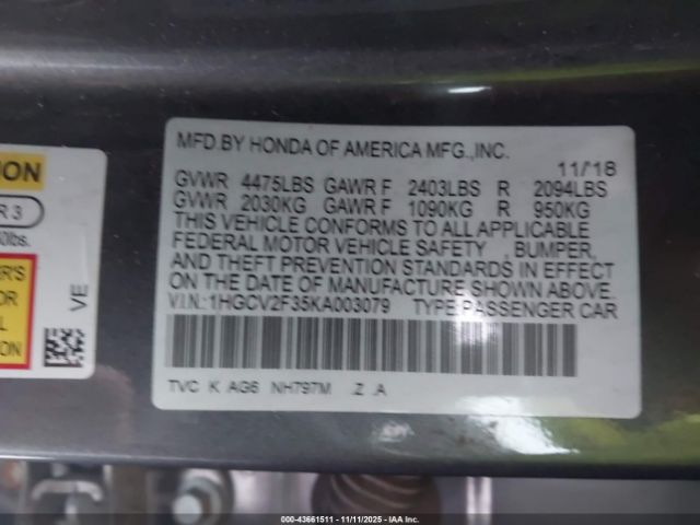 | VIN : 1HGCV2F35KA003079 |