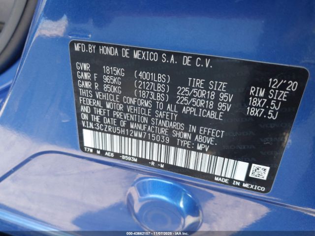 | VIN : 3CZRU5H12MM715039 |