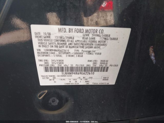 | VIN : 1LNHM94R69G622610 |