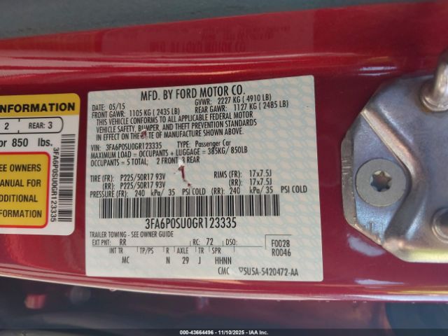 | VIN : 3FA6P0SU0GR123335 |
