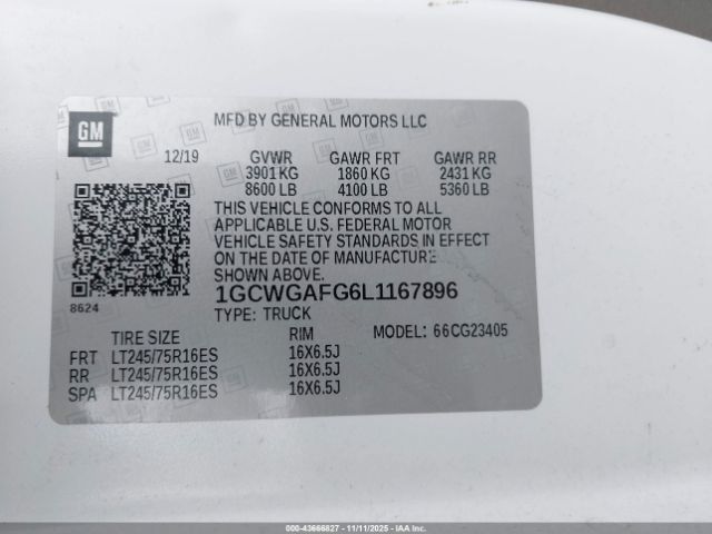 | VIN : 1GCWGAFG6L1167896 |
