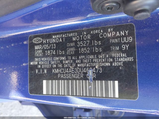 | VIN : KMHCU4AE3DU463473 |