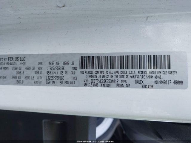 | VIN : 3C6TRVCG9KE534012 |