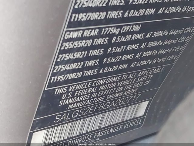 | VIN : SALGS2EF6GA262717 |