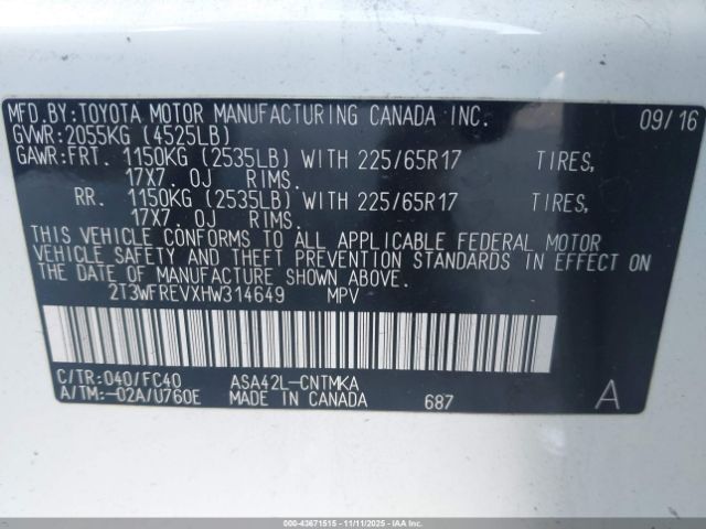 | VIN : 2T3WFREVXHW314649 |