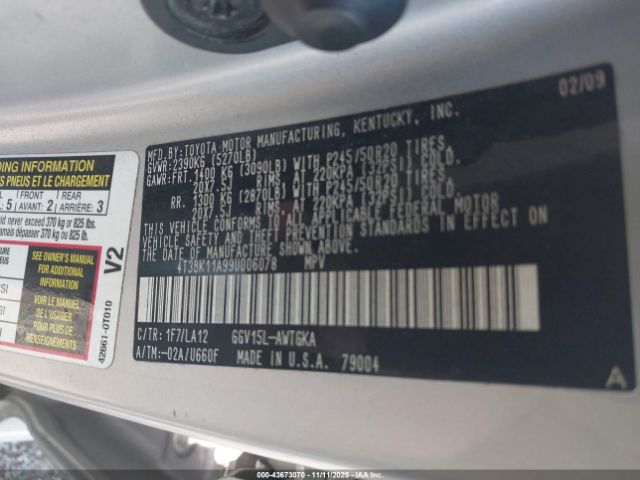 | VIN : 4T3BK11A99U006078 |