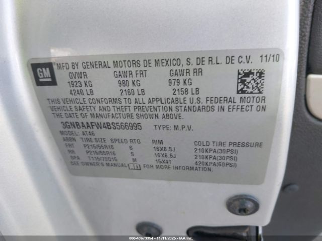 | VIN : 3GNBAAFW4BS566995 |