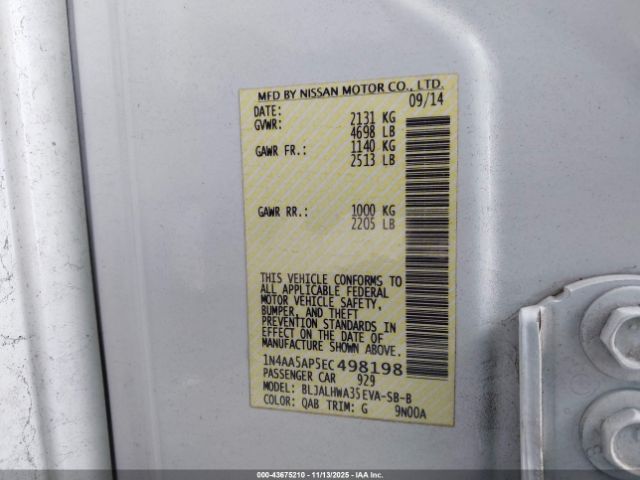 | VIN : 1N4AA5AP5EC498198 |