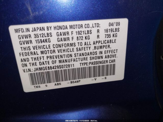 | VIN : JHMGE88429S072811 |
