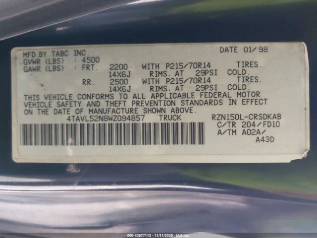 | VIN : 4TAVL52N8WZ094857 |