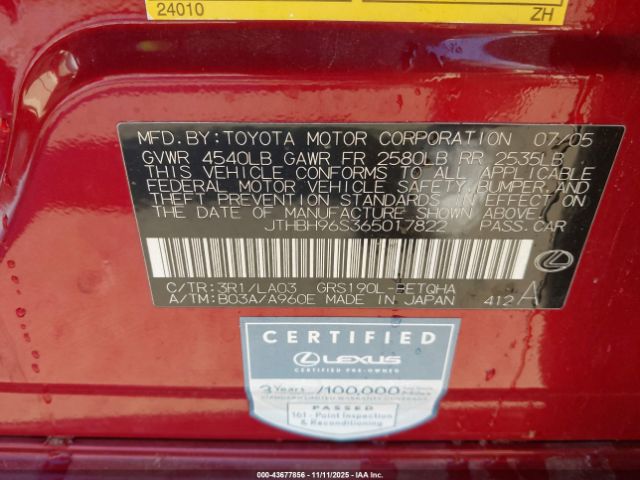 | VIN : JTHBH96S365017822 |