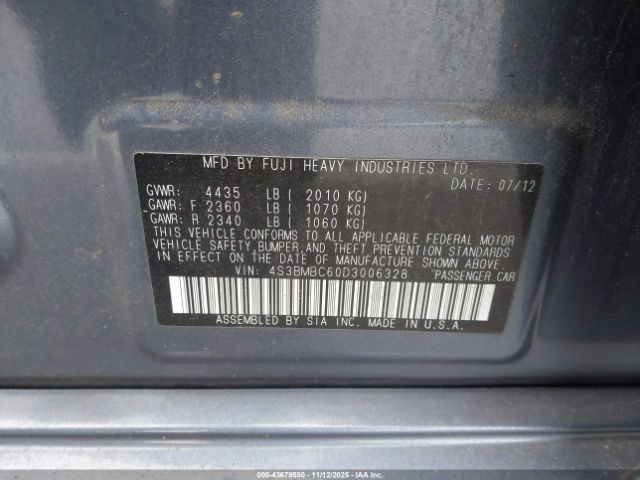 | VIN : 4S3BMBC60D3006328 |