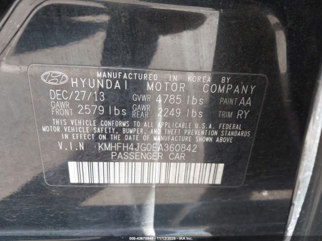 | VIN : KMHFH4JG0EA360842 |