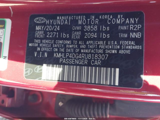 | VIN : KMHLP4DG4RU818307 |