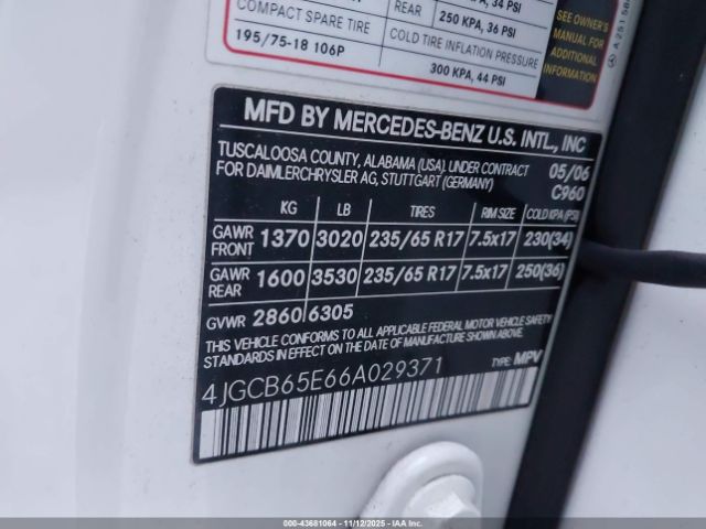 | VIN : 4JGCB65E66A029371 |