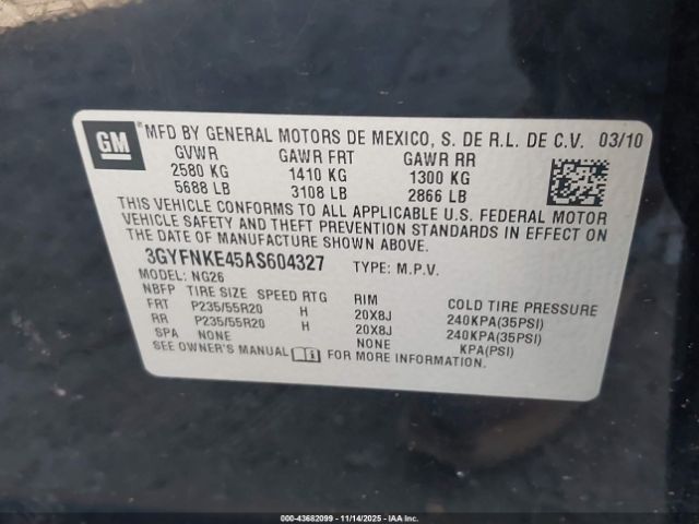 | VIN : 3GYFNKE45AS604327 |