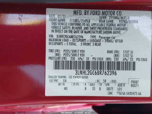 | VIN : 3LNHL2GC6BR762396 |