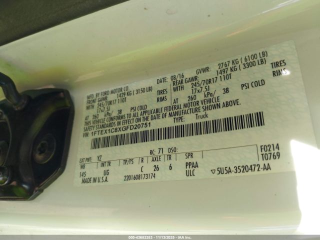| VIN : 1FTEX1C8XGFD20751 |