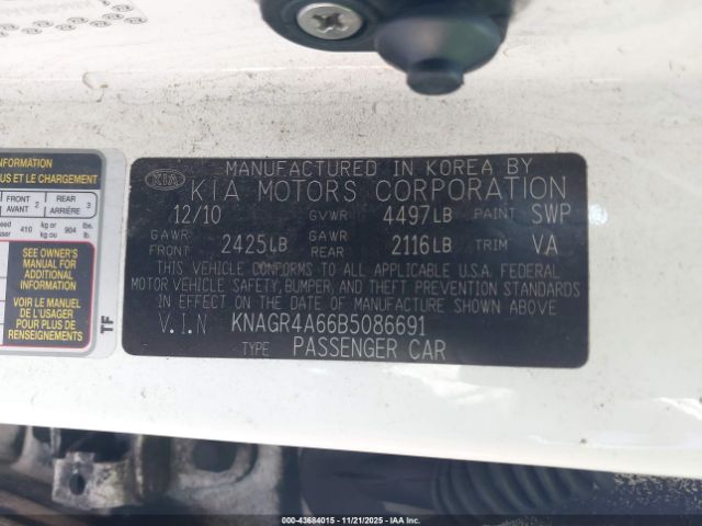 | VIN : KNAGR4A66B5086691 |