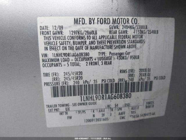 | VIN : 1LNHL9DR1AG608380 |