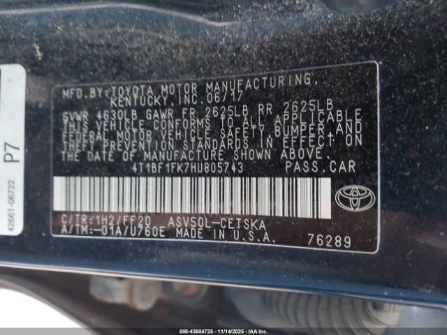 | VIN : 4T1BF1FK7HU805743 |