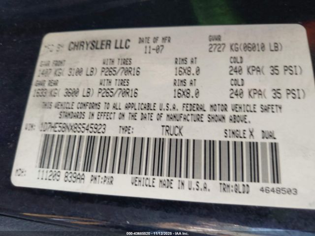 | VIN : 1D7HE58NX8S545923 |
