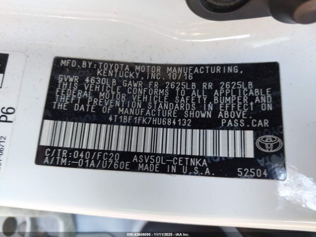 | VIN : 4T1BF1FK7HU684132 |