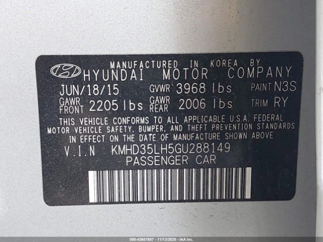 | VIN : KMHD35LH5GU288149 |