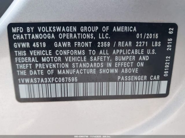 | VIN : 1VWAS7A3XFC067595 |