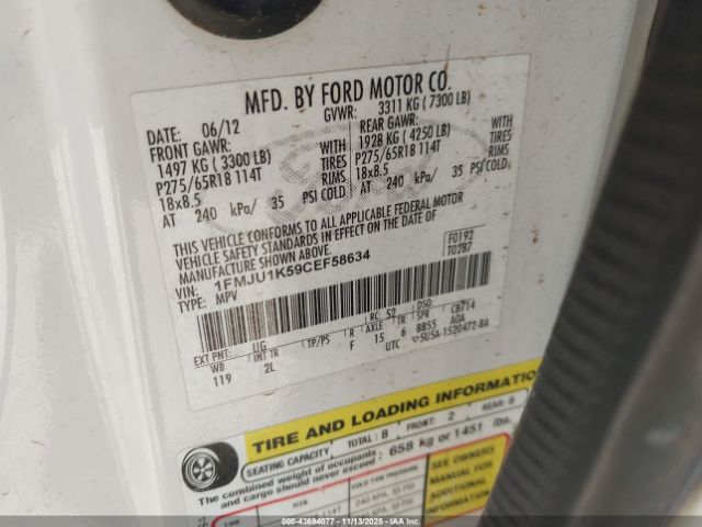 | VIN : 1FMJU1K59CEF58634 |