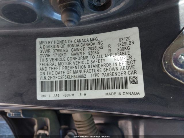 | VIN : 2HGFC2F6XLH549862 |