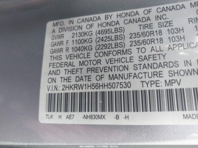 | VIN : 2HKRW1H56HH507530 |