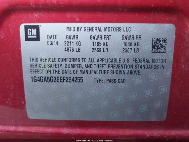| VIN : 1G4GA5G36EF254255 |