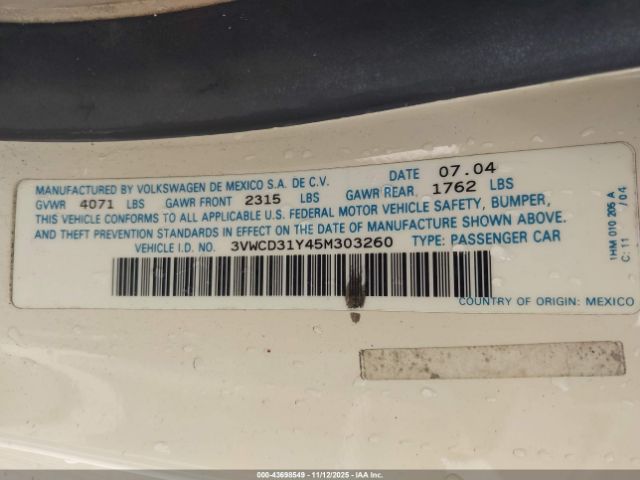 | VIN : 3VWCD31Y45M303260 |
