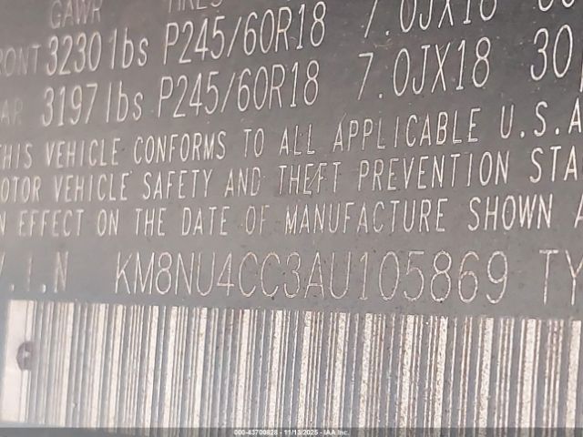 | VIN : KM8NU4CC3AU105869 |