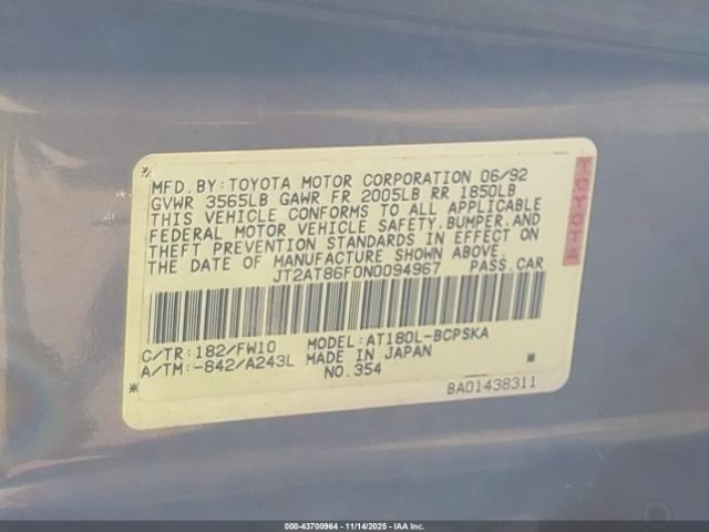 | VIN : JT2AT86F0N0094967 |