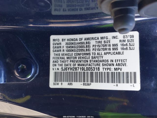 | VIN : 5J6YH28719L005318 |
