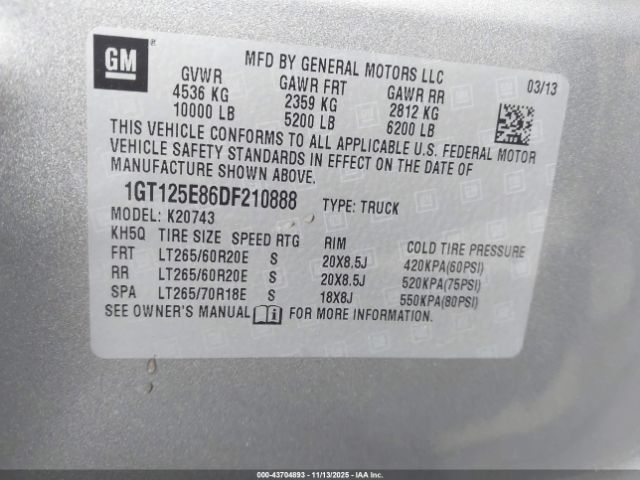 | VIN : 1GT125E86DF210888 |