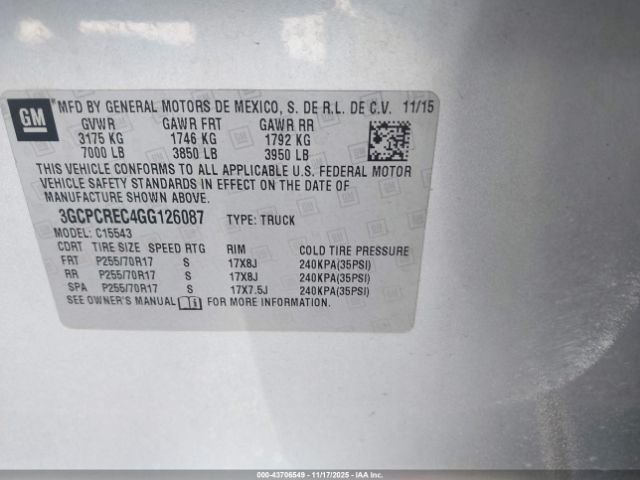 | VIN : 3GCPCREC4GG126087 |