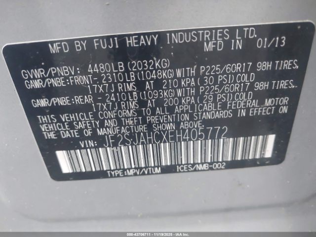 | VIN : JF2SJAHCXEH405772 |